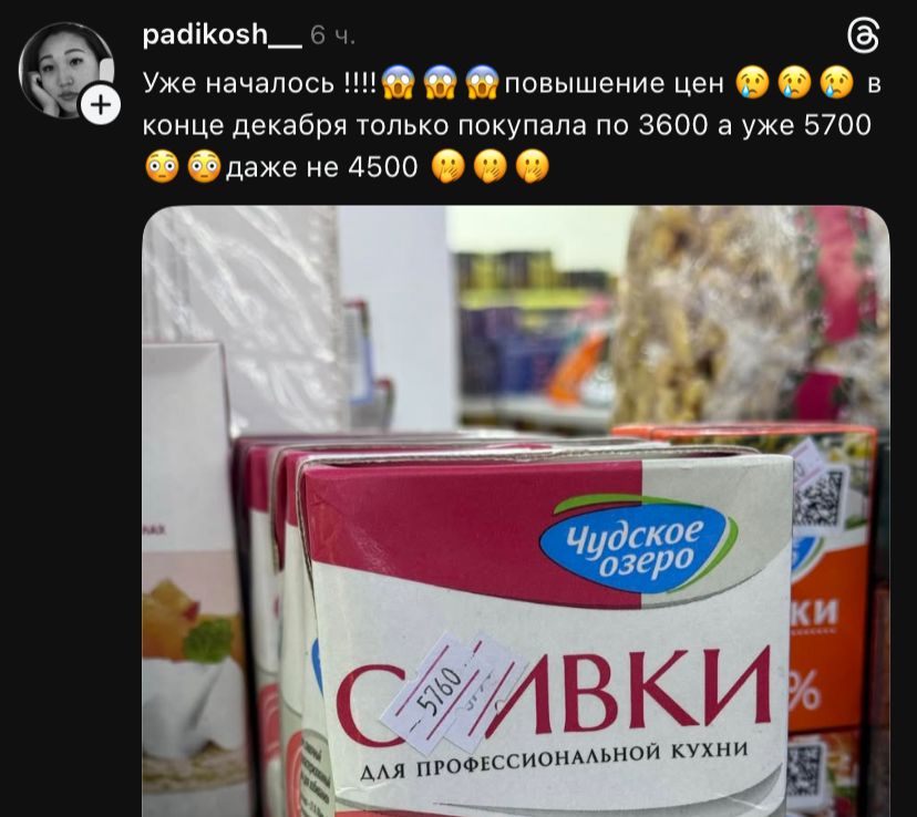 Үй жанындағы дүкендер мен ірі супермаркеттер тауарлар мен өнімдер бағаларын өзгертуге кірісті. Әлеуметтік желілерде тұтынушылар бағаның тым өсіп бара жатқанын көрсететін суреттерін жариялап, наразылық білдіре бастады.