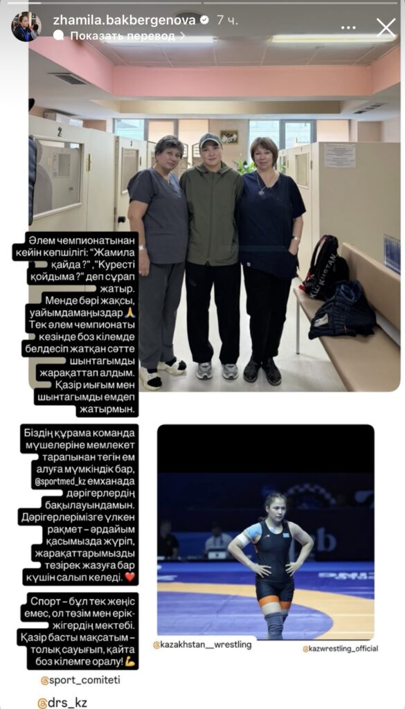 Спорт — тек жеңіс емес. Ол — төзім мен ерік-жігердің мектебі. Қазіргі басты мақсатым — толық сауығып, қайта боз кілемге оралу”, — деп жазды ол Instagram желісінде.