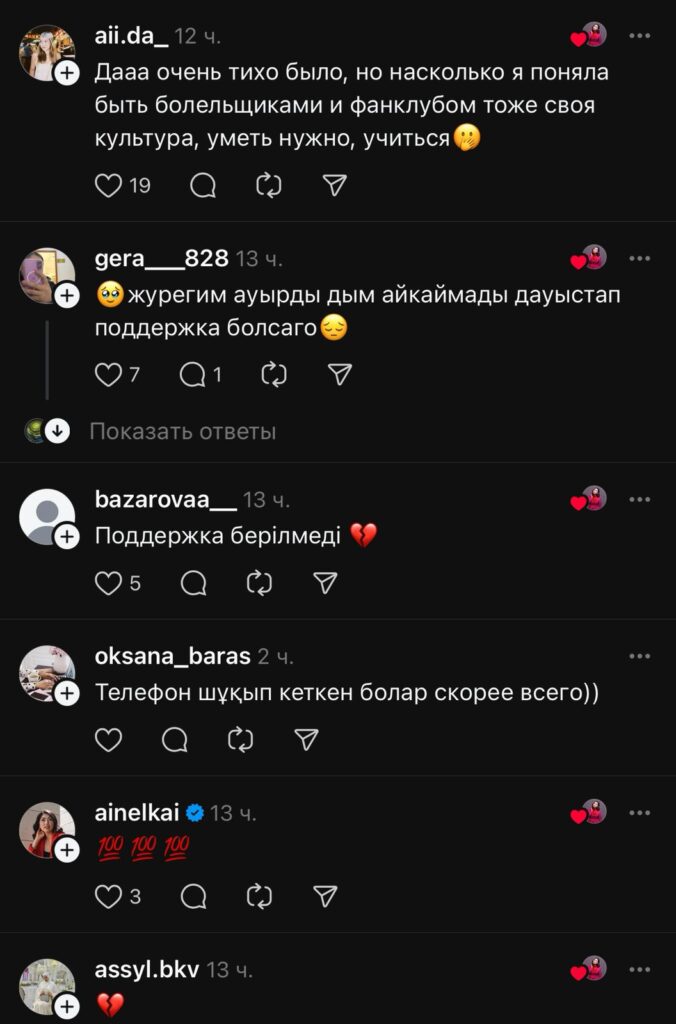 Әлеуметтік желіде жанкүйерлер мен кейбір өнер адамдары да стадиондағы қолдаудың әлсіз болғанын айтуда.