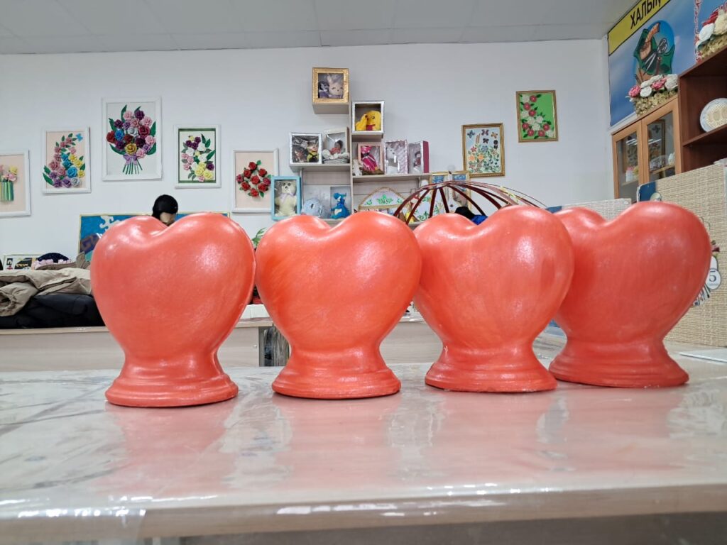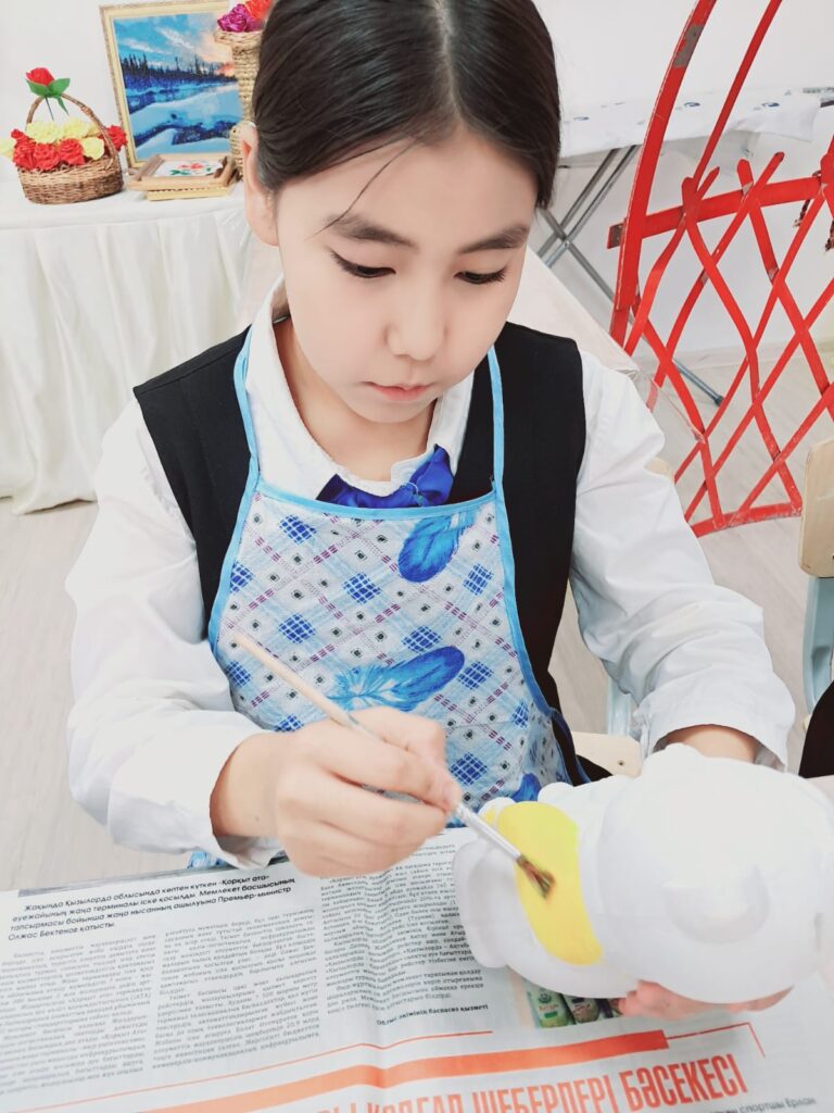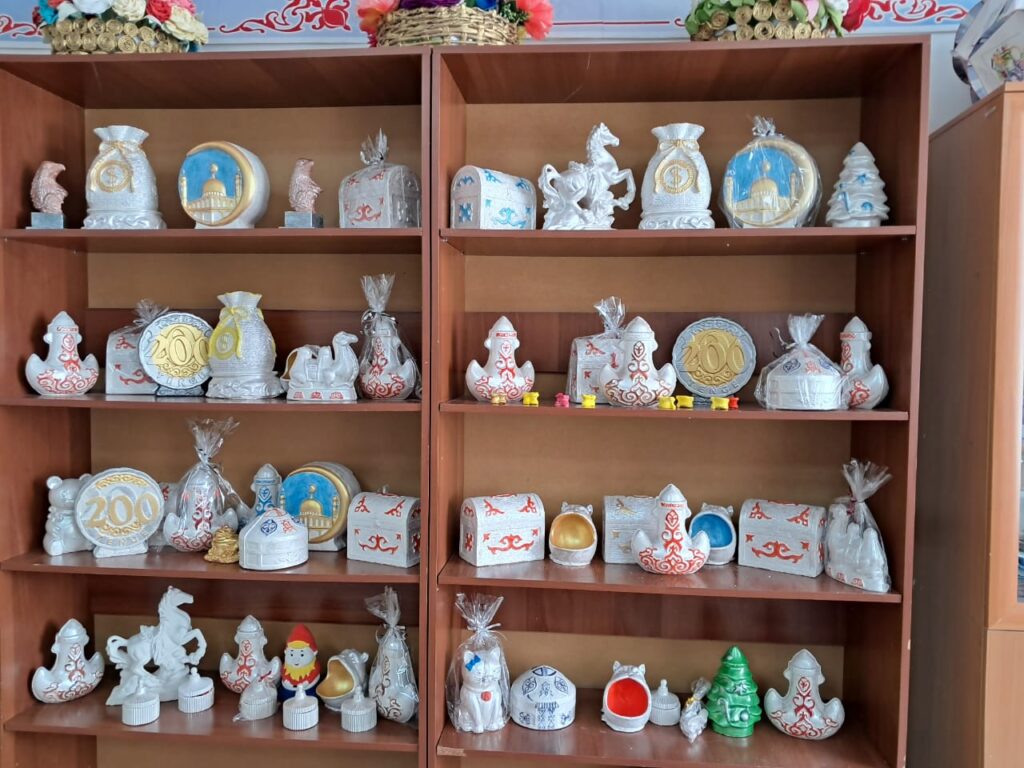 Дайын бұйымдар түрлі бояулармен әсем безендіріліп, лак жағылып, сәндік сипат берілді. Бұл туындылар мектеп ішінде өтетін мерекелік іс-шаралардың жеңімпаздарына сыйлық ретінде табысталып келеді.