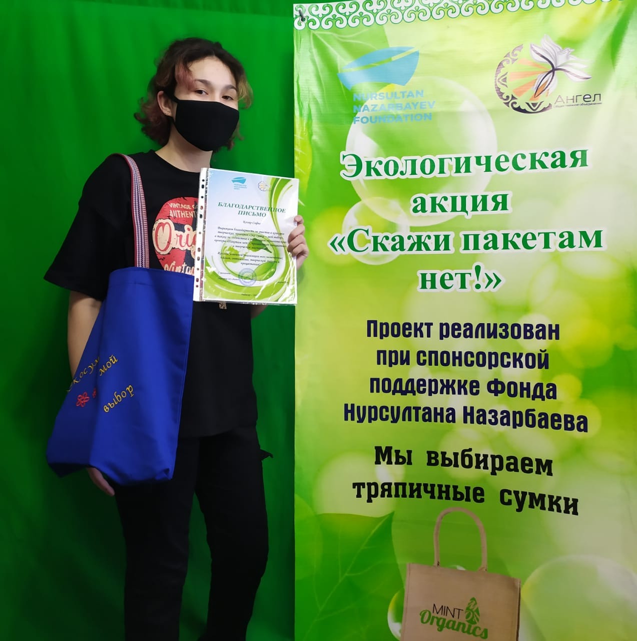 Естеріңізге сала кетейік, «Ангел» ҚБ «Пакеттерге жоқ дейміз!» акциясын жүзеге асыру үшін Нұрсұлтан Назарбаев Қорының «Тұрақты даму мүддесіндегі жаһандық проблемаларды жергілікті шешу» әлеуметтік идеялар мен жобалар жәрмеңкесінің қорытындысы бойынша грант жеңіп алды.