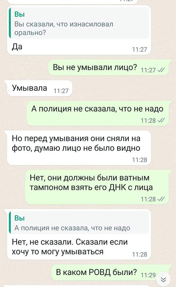 Мен сізден басшы ретінде қызметкерлерге зорлаудан кейін зорланған қыздың құқықтарын жан-жақты түсіндіріп, моральдық қолдау қажет екенін түсіндіруіңізді сұраймын. Бұл оның конституциялық құқығы. Егер оның адвокаты болса, сіздің тергеушіңізде қазірдің өзінде көп мәселе туындайтын еді", деп жазды.