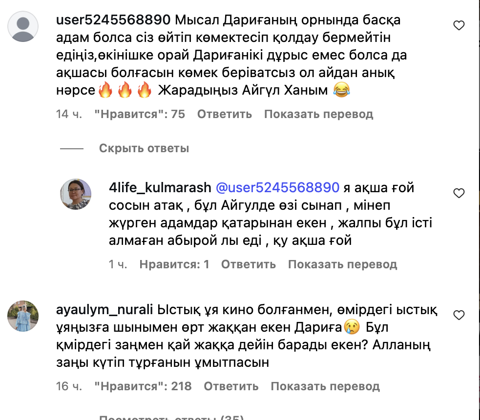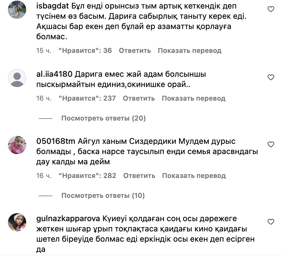 Танымал заңгер Айгүл Орынбек халық тарапынан қатаң сынға ілікті. Ол өзінің желідегі парақшасында актриса Дариға Бадықованың бұрынғы күйеуіне қатысты арыз жазғанын мәлімдеген еді.