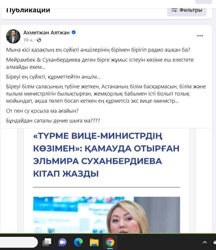 Біреуі білім саласының түбіне жеткен, Астананың білім басқармасын, білім және ғылым министрлігін былықтырған, жемқорлық бабымен істі болып толық мойындап, босап кеткен ең құрметсіз экс вице-министр… От пен су қосыла ма ағайын?