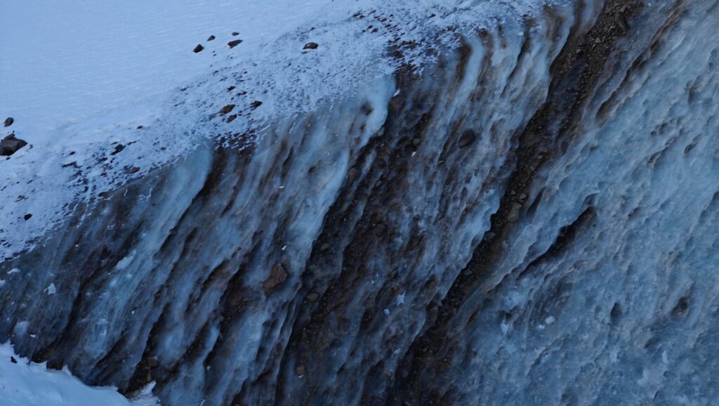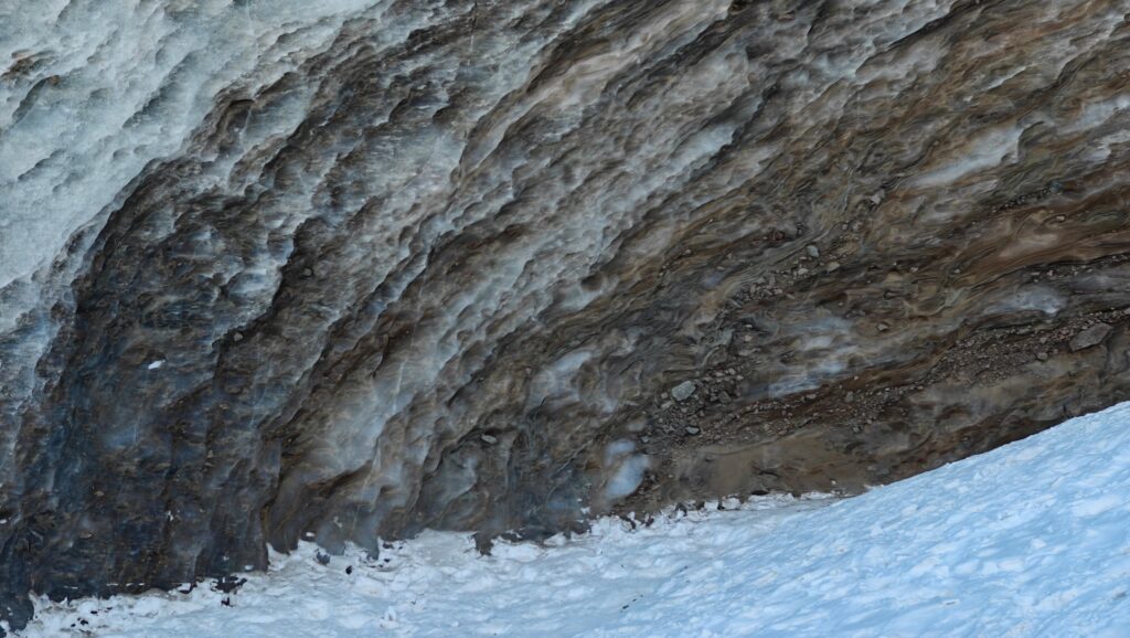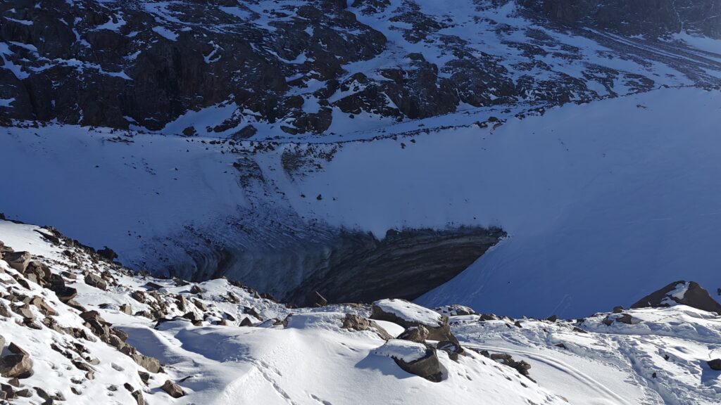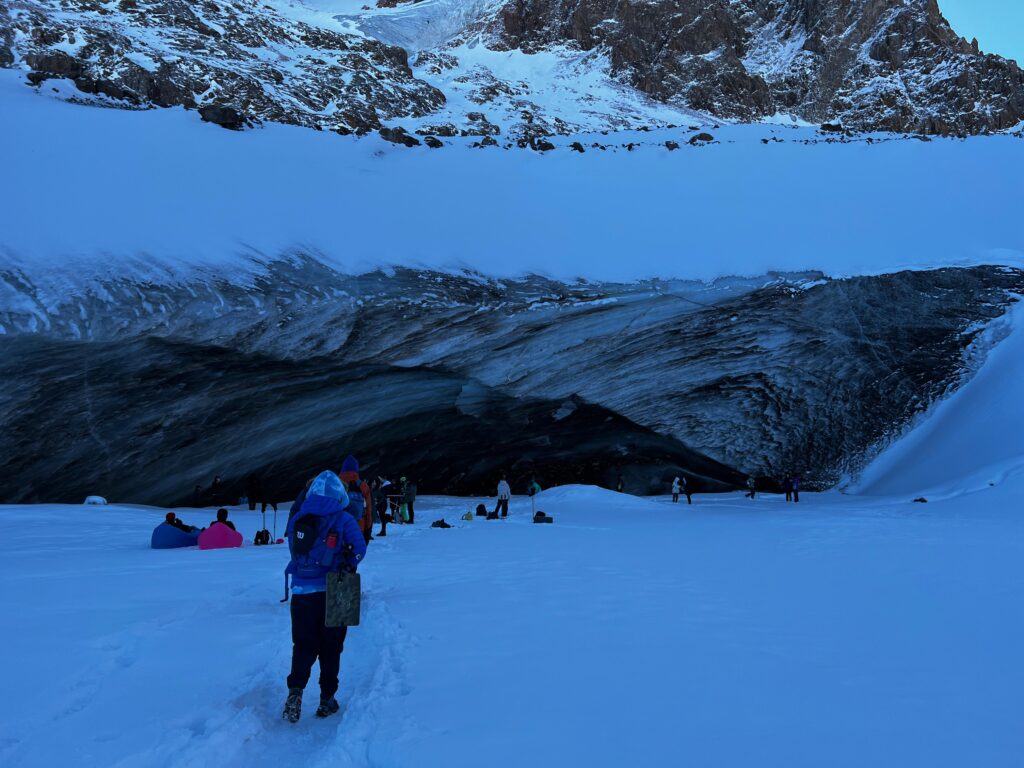 Алғашқы рет барып тұрғандықтан, Алматының тауларын жақсы білетін гидпен бардық. Айжан Нұрмашева мұздықтың қазіргі күйіне алаңдаулы. Оның айтуынша, соңғы төрт жылда мұздық айтарлықтай кішірейіп қалған.