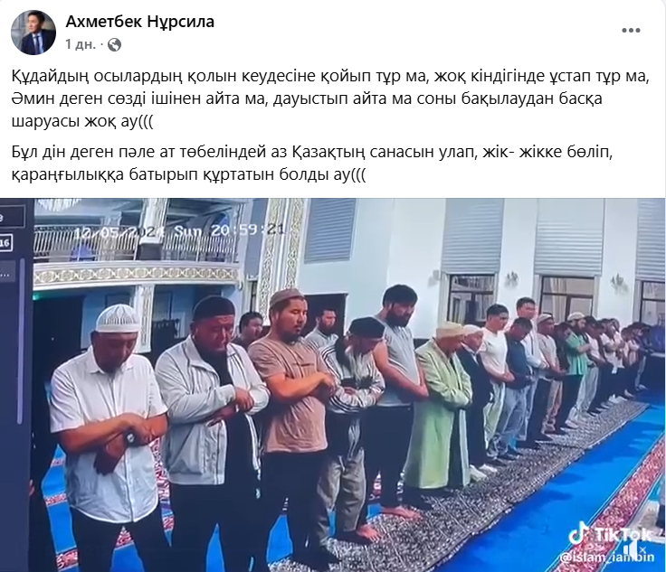 «Құдайдың осылардың қолын кеудесіне қойып тұр ма, жоқ кіндігінде ұстап тұр ма, Әмин деген сөзді ішінен айта ма, дауыстып айта ма соны бақылаудан басқа шаруасы жоқ-ау!