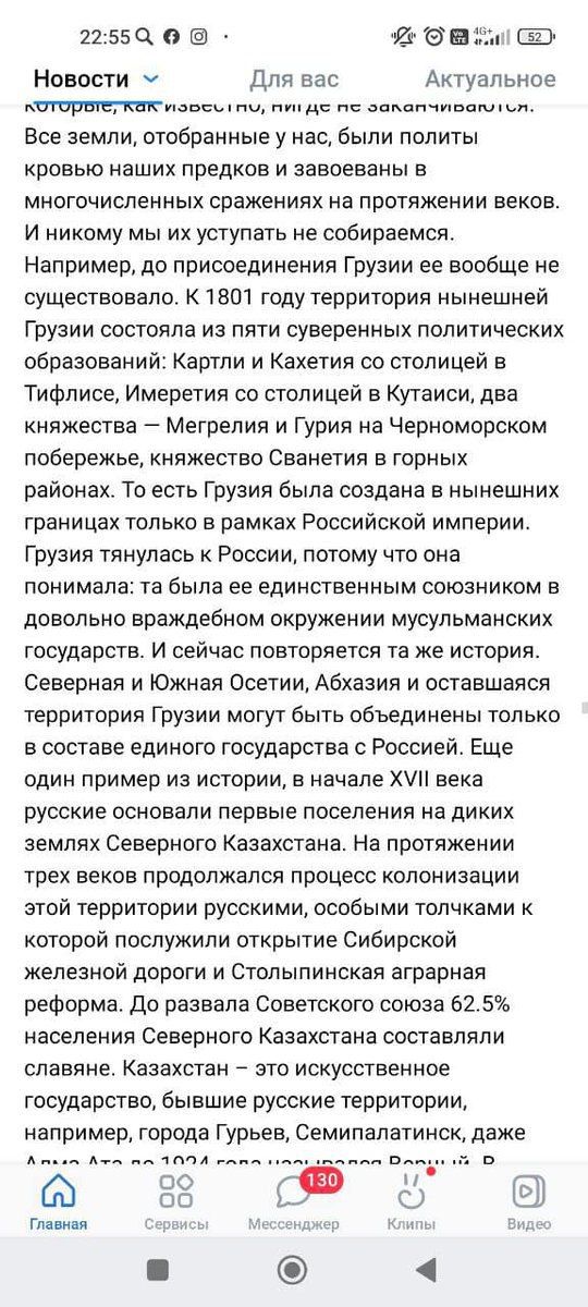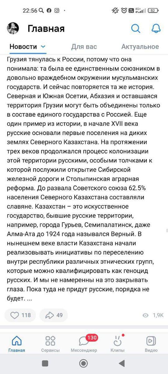 Постта Қазақстан "жасанды мемлекет" деп жазылған, сондай-ақ, "Солтүстік және Оңтүстік Осетия, Абхазия және Грузияның қазіргі аумағы тек Ресеймен біртұтас мемлекет ретінде біріктірілуі мүмкін" деп жазылған.