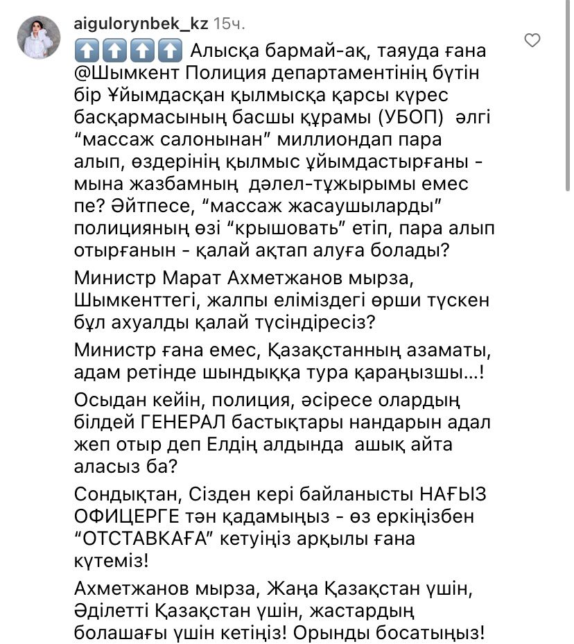 Заңгер Айгүл Орынбек Ішкі істер министрі Марат Ахметжановтың отставкаға кетуін талап етті.&nb