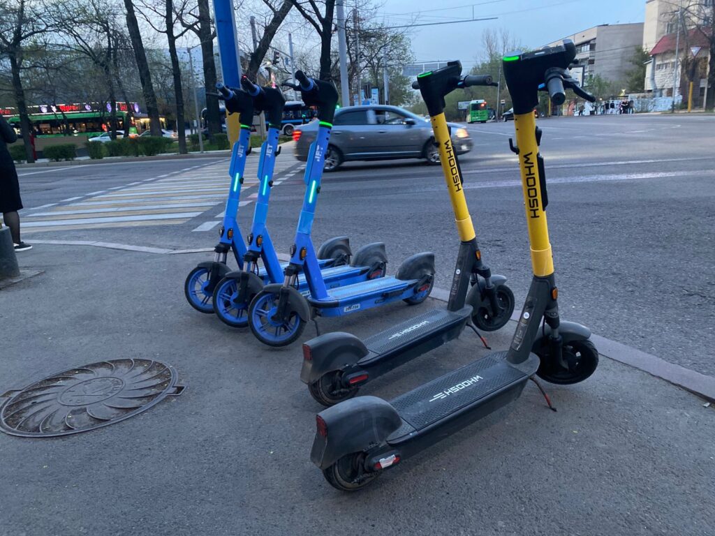 Көшелерде қатар тізілген көк және сары самокаттар көзге бірден түседі. Арнайы тұрақтарда олар ұқыпты орналастырылған, себебі талап сақталмаса, техника айыптұрағына жеткізіледі. Мұндай тәжірибе өткен жылы да болған.