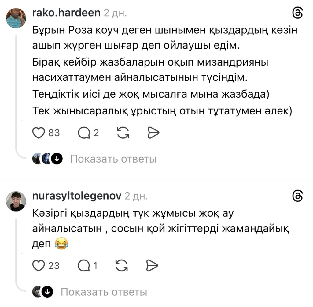 ”Қарны шыққан еркектер” туралы айтқан Роза коуч көпшіліктің ашуына тиді - kaz.caravan.kz