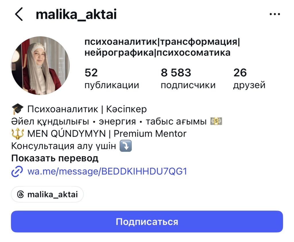 Коуч Малика Ақтайдың аккаунтына қарасақ, әйел Мәскеуде білім алған және әйелдерге тұрақты түрде психологиялық дәрістер өткізіп келеді. Жиындарда қаржы, жеке даму, қарым-қатынас секілді түрлі тақырыптар талқыланады. Осындай дәрістердің бірінде Малика “ер адамдардың бір уақытта бірнеше істі қатар атқара алмайтынын” айтқан.