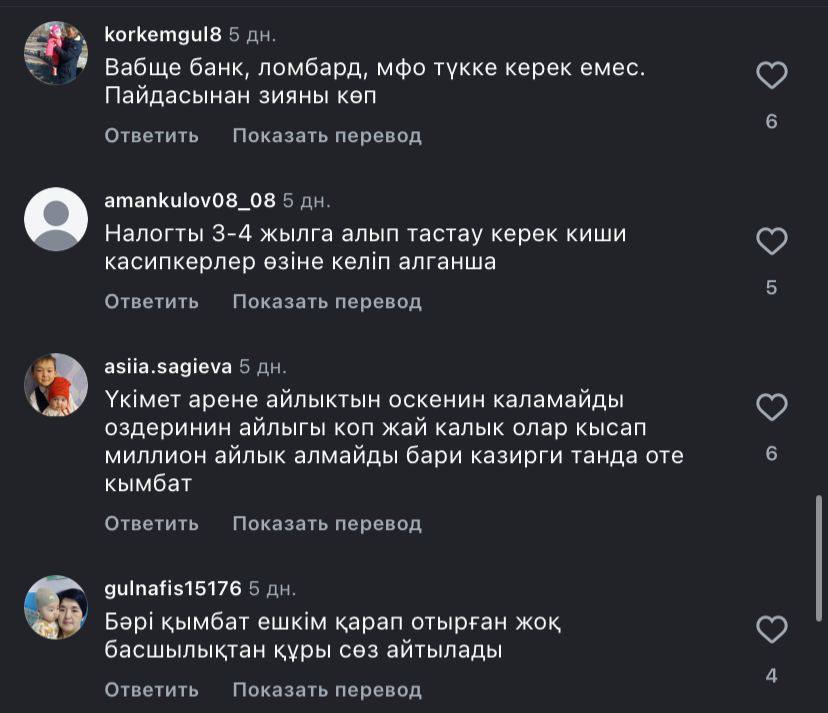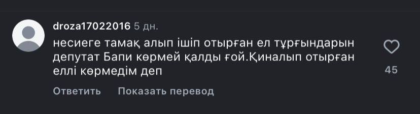 «Жұмыс берушілер жалақыны неге уақытында төлемейді? Салдарынан азаматтар несиесін уақытында жаба алмайды, қарызға батып кеткен, тіпті азық-түлікті несиеге алуға мәжбүр. Осы мәселелерді шешу үшін жұмыс берушілерге қойылатын талаптар күшеюі керек», — деді халық қалаулысы.