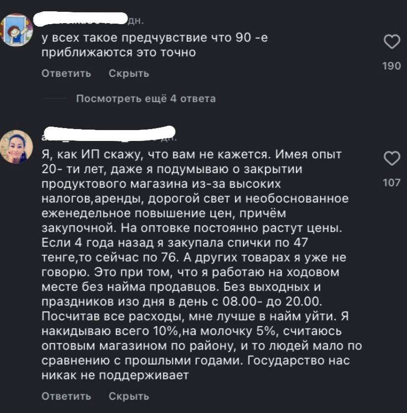 Сaravan.kz медиа порталының тілшісі жариялаған видеодан кейін, бірнеше кәсіп иелері хабарласып, жанайқайын жеткізді. Айтуларынша, жағдай тым ауыр. Кәсіптен пайда емес, қиындық көріп келеді. Салдарынан бір бөлігі онлайнға ауысуға көшсе, басқалары жабылуға жақын. Жағдай тек ірі мегаполистерде ғана ауыр емес. Қазақстанның басқа өңірлерінде де ғимараттар жаппай жабыла бастаған. Салдарынан жұмыссыздық деңгейі арта түспек. Халықтың пікірінше, қазіргі жағдай 90-жылдардағы дағдарысты еске түсіреді.