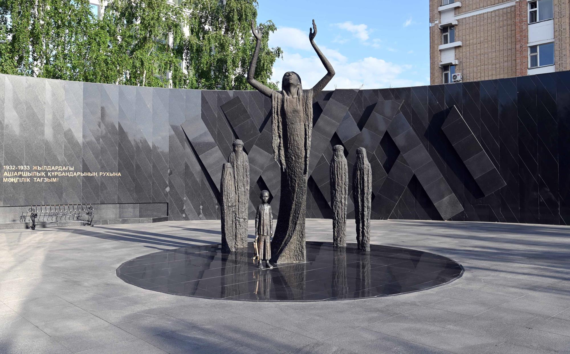 Президент ескерткішке гүл шоғын қойып, саяси қуғын-сүргін және ашаршылық кезінде құрбан болғандардың рухына тағзым етті.