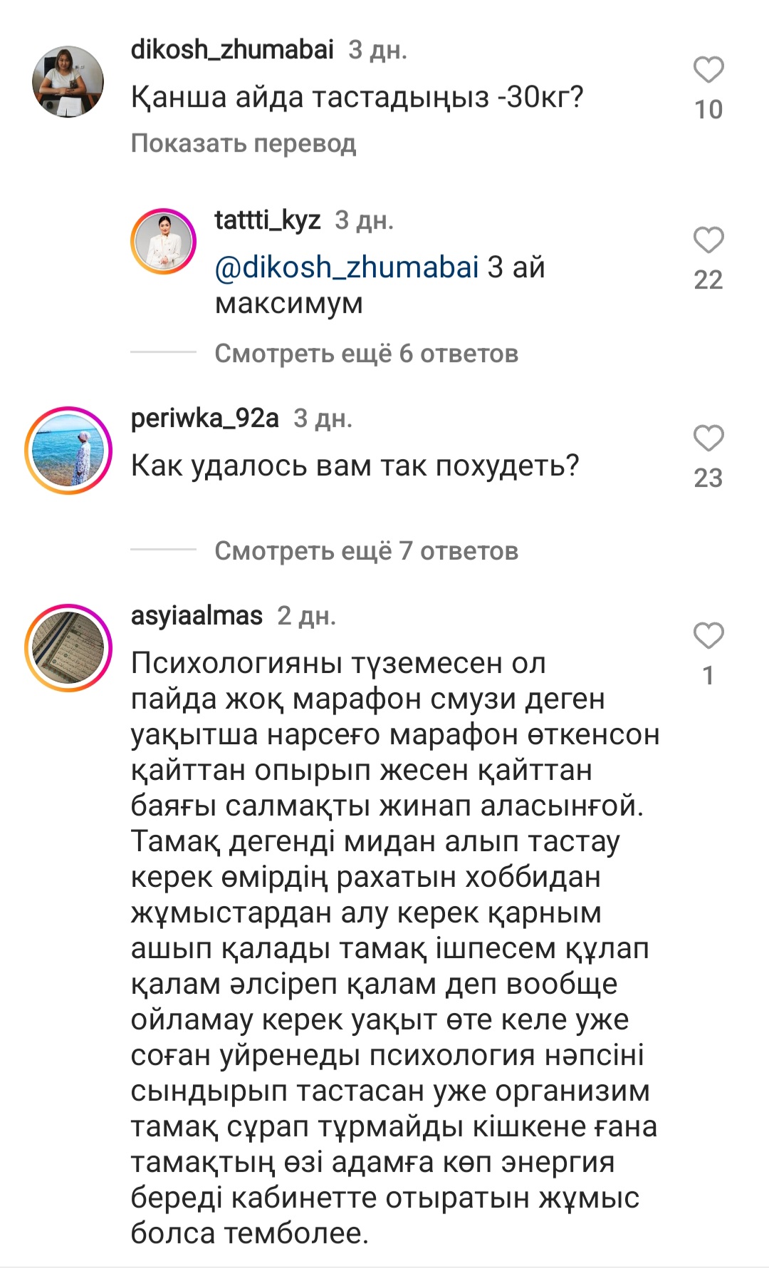 Дина "максиуму 3 айда 30 кг тастадым" деп жазды.