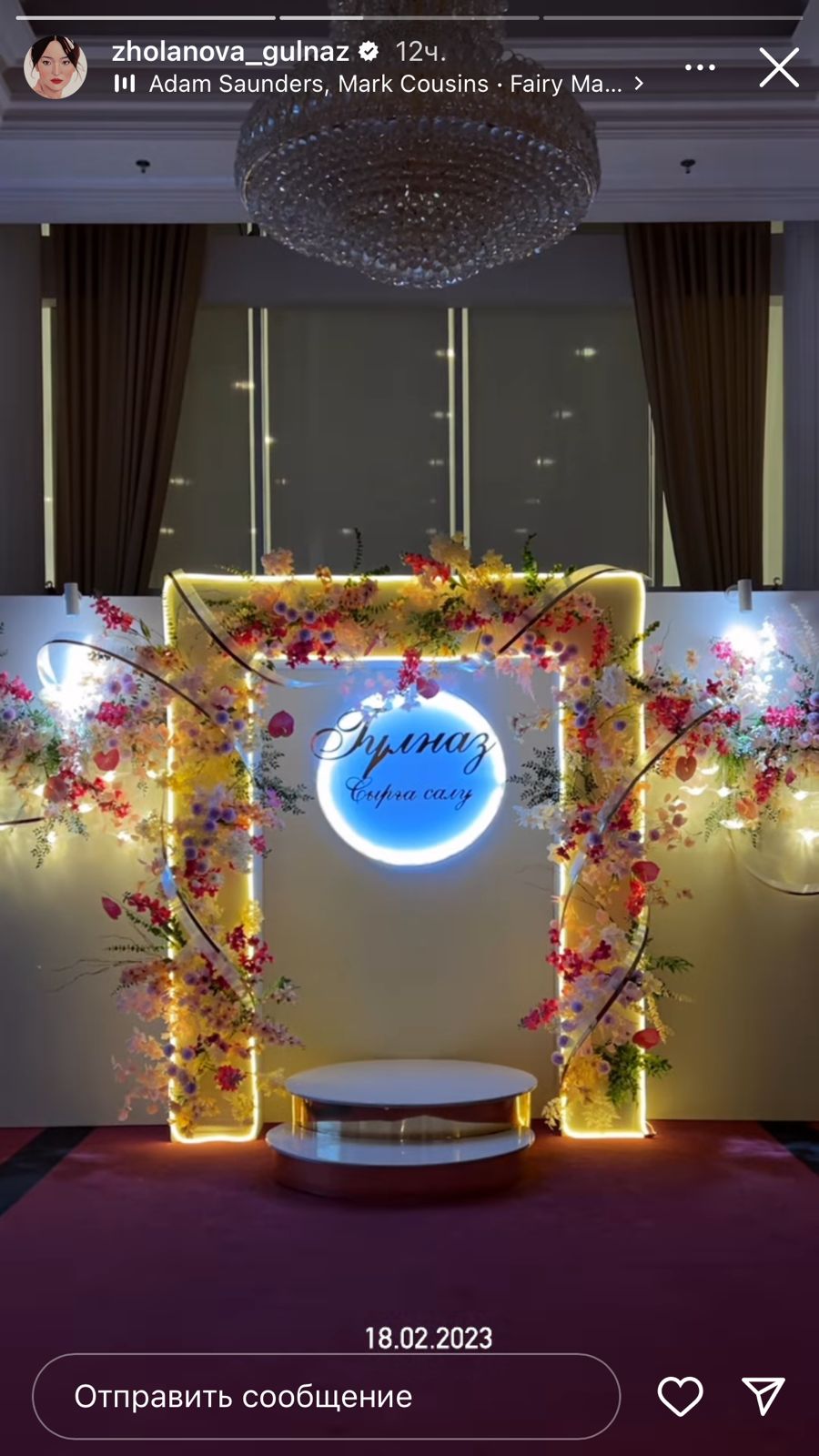 Ал, Гүлназ Жоланованың өзі әзірге тойға дайындық сәттерінің шет жағасын ғана көрсетіп қойды. Өнер иесінің жұбы кім екендігі әзірге белгісіз.