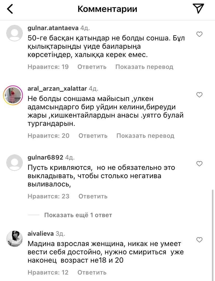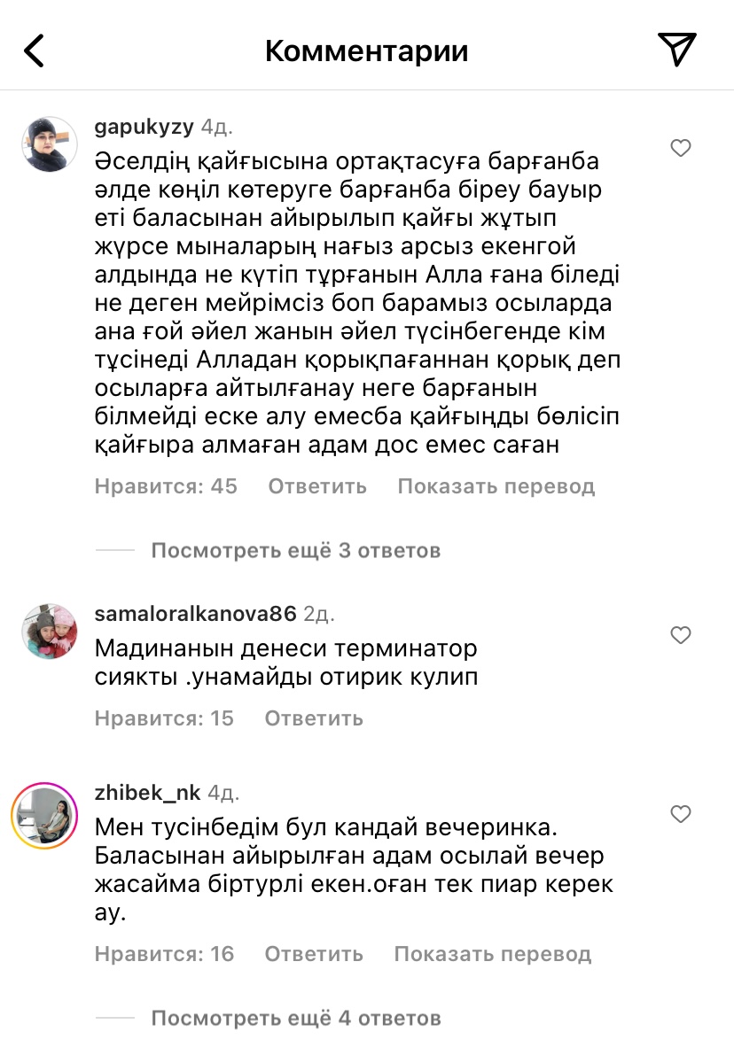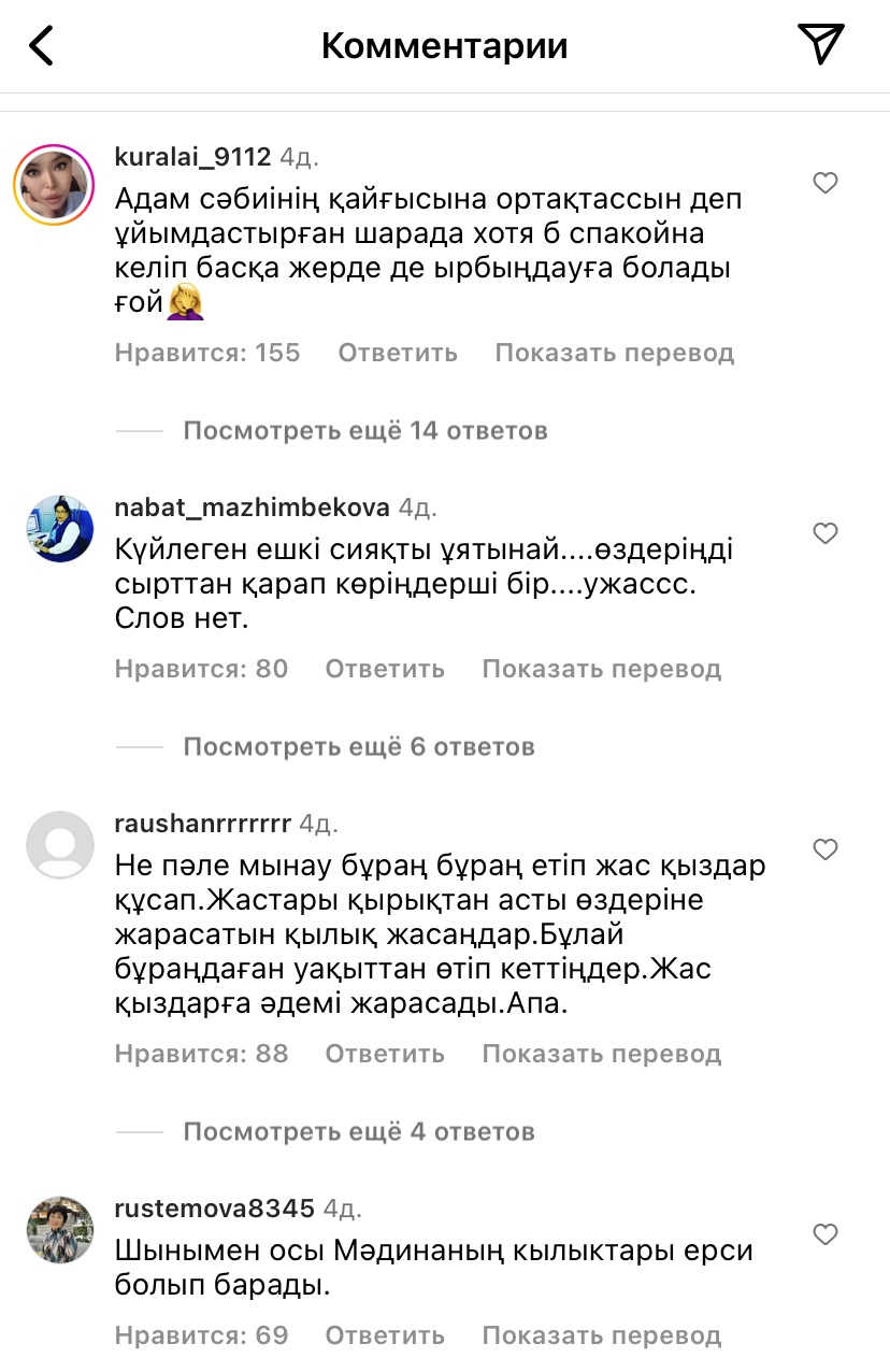 Бұл шарадан кейін еске алу кешінде Мадина Сәдуақасова Instagram желісіндегі парақшасында өзге жұлдыздармен билеген биін желіге жариялаймын деп оңбай сөз естіді, — деп хабарлайды Caravan.kz медиа порталы.