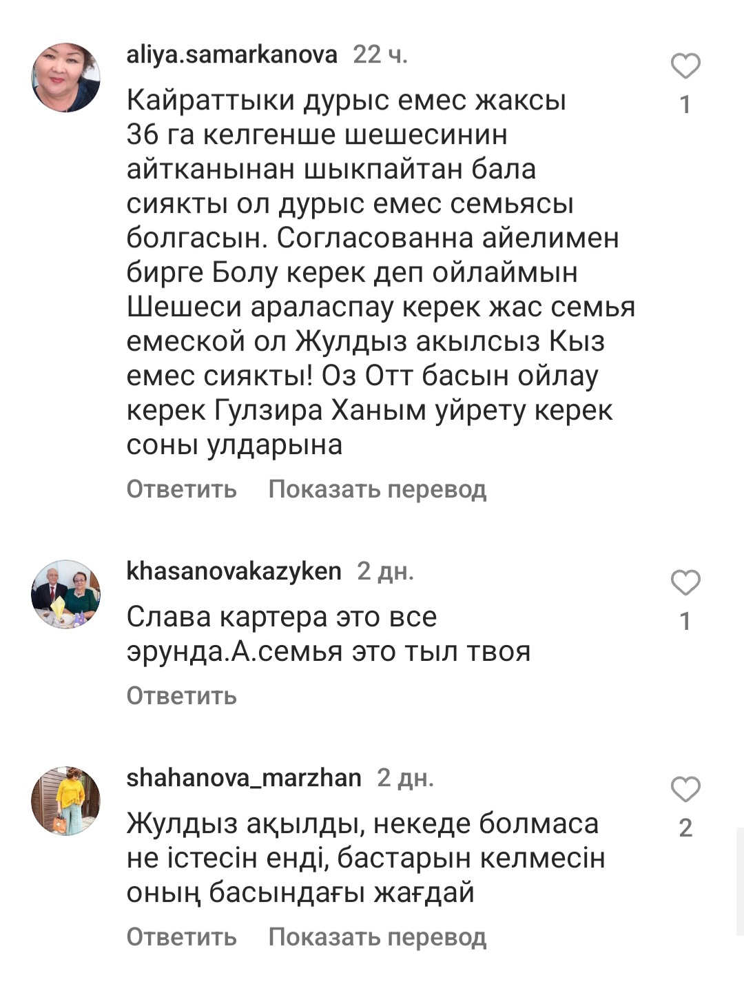 Бірі Жұлдызды кінәләп, бірі Қайратты, ал, енді бірілері әншінің анасы Гүлзира ханымды кінәлап жазды.