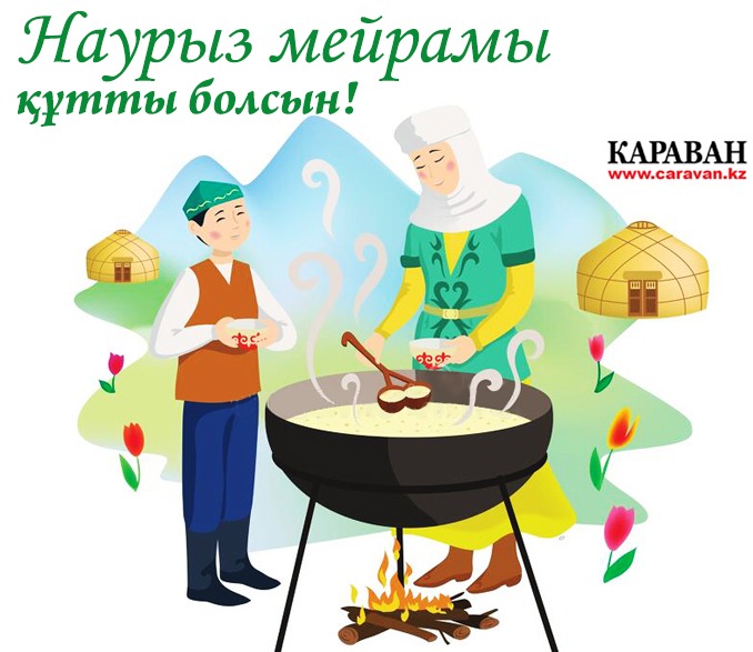 Жер-жаһанды сері самалға өткізіп, жұрттың аузын аққа жеткізіп, нұр тамшыларын аямай төккізіп, қиындықтың бәрін келер жылға өткізіп, Самарқанның көк тасын ерітіп, алтынкүрекпен жер жүзін жібітіп, тас жүректерді мейіріммен үгітіп, жеті қат жер астына дейін балқытып, жыл құстарының әнін шалқытып, Жетісуға жасылдан көйлек кигізіп, Сарыарқаны самал желге сүйгізіп, Алатаудың төбесінен көкке тигізіп, Қаратауға құт-берекені үйгізіп, ақ бұлақтарды ақтартып, шың-құздарды шаттанып, тізбектеп тырналарды, сүйгізіп сырғаларды, шоршытып балықтарды, шапшытып арықтарды, тербелтіп наз қайыңдарды, төгілтіп жаз жайында әнді, қаздарды қаңқылдатып, найзағай жарқылдатып, айтып ертегіңді, жайып желкеніңді, жетіп келген әз-Наурыз мейрамы құтты болсын!!!