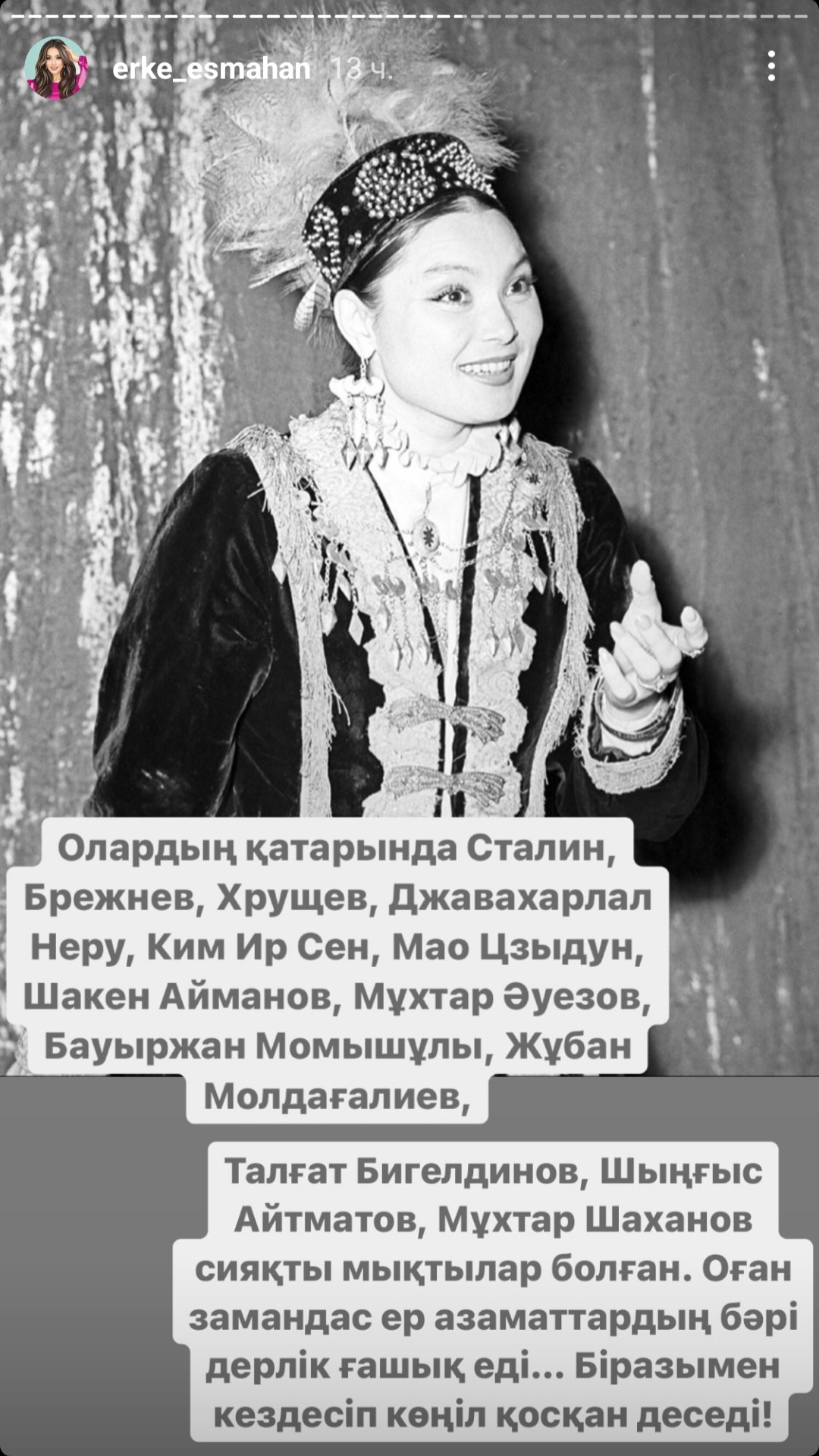 Әнші Ерке Есмахан аңыз әнші жайлы бірқатар деректерді желідегі жеке парақшасына жүктеді, деп хабарлайды Caravan.kz медиа порталы.