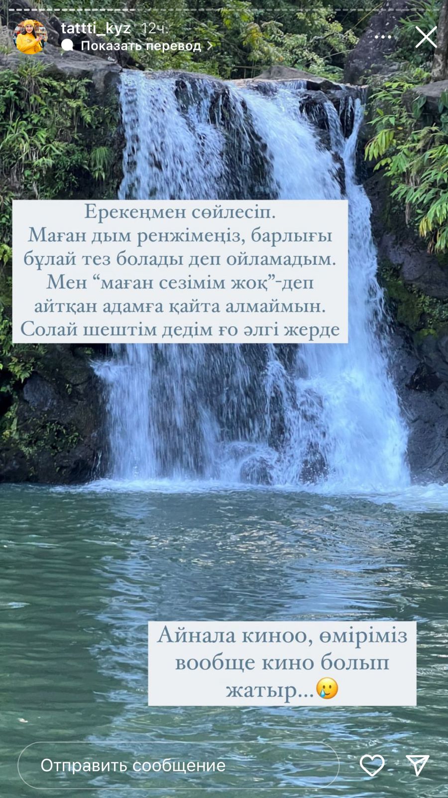 "Ерекеңмен сөйлесіп, мен "маған сезімім жоқ" деп айтқан адамға қайта алмаймын. Солай шештім дедім", — деп жазған.