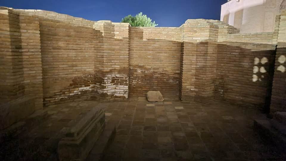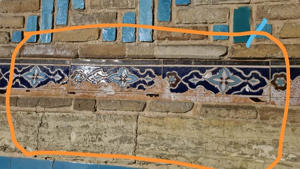 “Аға мен 11 маусым күні кесененің алдындағы екі сары сызықтан ішке кіре алмадым. Байқап қарасам кесененің іргесі зәктеніпті, бір екі кірпіш алдынғы жағында төбеден түсіп жатыр. Кейін ашылды деген соң қайта барып ішін араладым. Бөлмелердің атын білмеймін мына суреттердегдей қабырғаларына судың ызасы шығып кетіпті.