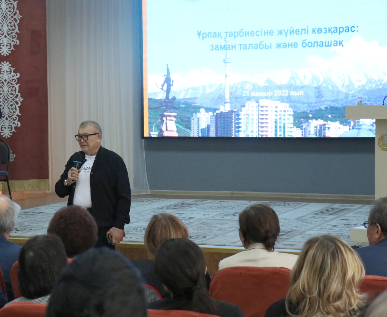 — Бала тәрбиесі қоғамда маңызды проблема болып тұр. Шетелдердің білім беруін өзім көп зерттегенмін. Әлемдегі білім сапасы ең дамыған елдерді қарайтын болсақ, ол елде бала тәрбиесіне көп көңіл аударған. Сондықтан, кім бала тәрбиелеуге кім көңіл аударса, сол елдің білімінің жақсы болғаны. Екінші кезекте ұстаз. Ұстаздық қызметке икемді адам ұстаз болу керек. Осы екеуі маңызды. Сол себепті, білім сапасын көтеруге көп ойластырып, Алматы қаласының Білім басқармасының бастығы Ләззат Әуесханқызымен ақылдаса отырып, Алматы қаласының қазақ аралас мектептерінде тәрбие беру жүйесін жүйелі түрде жоба жасасақ дедік. Сол әңгімеден туындаған жоба 1-ші сыныптан бастап, 11-ші сыныпқа дейінгі барлық оқушыларға ғылыми негізде, ғылыми практикалық түрде жүйелі түрде тәрбие беру. Бұның тұжырымдамасын жасау керек. Бір тұжырымдаманың аясында 13 әдістемелік нұсқаулық дайындалды. Мұнда алты бағыт бар.
