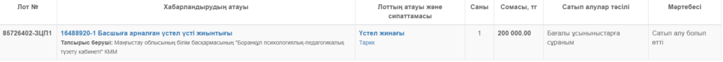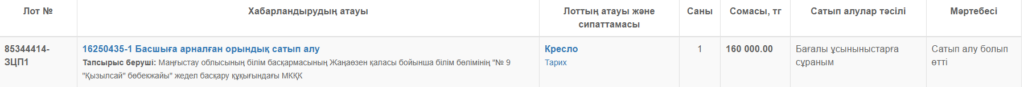 Қазақстан Республикасының мемлекеттік сатып алулары сайтынан скриншот