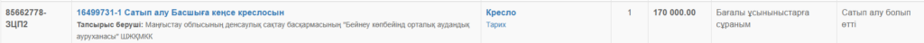 Ал Маңғыстау облыстық денсаулық сақтау басқармасына қарасты Бейнеу аудандық көпсалалы орталық ауруханасы арқалығы реттелетін, қара түсті, «максималды жайлылыққа арналған» кеңсе креслосын 170 мың теңгеге сатып алған.