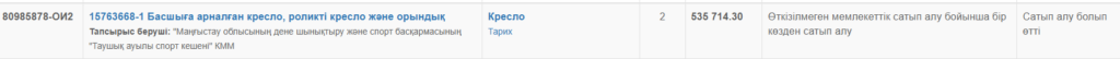 Ең қымбат сатып алуды Таушық ауылындағы спорт кешенінің қызметкерлері жасаған. Олар басшыға арналған екі ортопедиялық креслоны әрқайсысын 267 857 теңгеден алып, жалпы 535 714 теңге жұмсаған.
